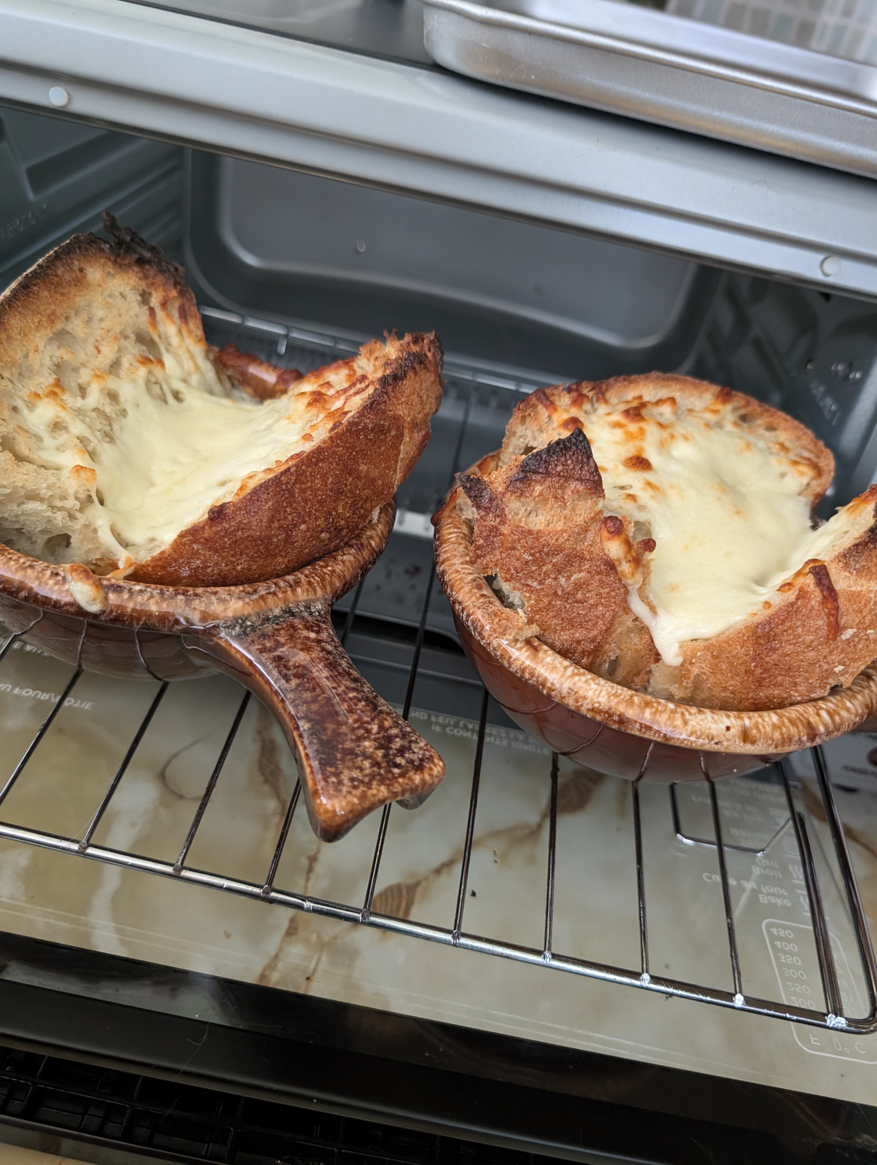 - Verser la soupe dans des bols allant au four.